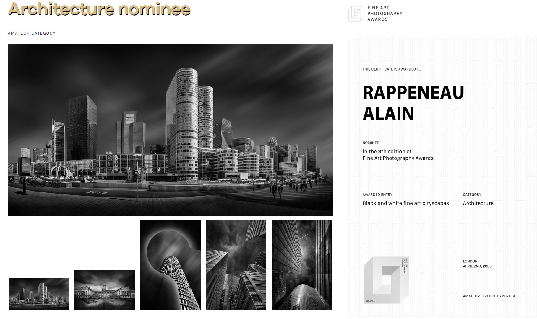 Mention honorable au concours ND Awards 2022 catégorie Architecture Cityscape Non professionnel