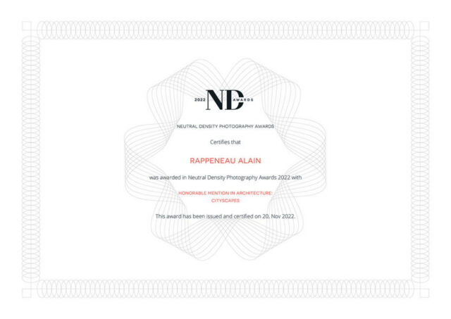 Mention Honorable aux ND Awards 2022 Architecture Cityscapes