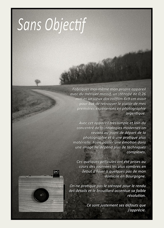 Fabriquer moi-même mon propre appareil avec du merisier massif, un sténopé de 0,26 mm et un vieux dos rollfilm 6 x 9 cm avait pour but de retrouver le plaisir de mes premières expériences en photographie argentique.
